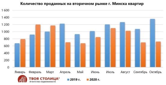 Процесс снижения цен на недвижимость в Минске начался еще весной. В апреле на фоне значительного роста долларового курса и пика коронавируса спрос упал почти вдвое как на первичном, так и на вторичном рынках. Все это не могло не отразиться на растущих до этого ценах. В итоге их рост остановился, а в последующие месяцы они уже только снижались.
