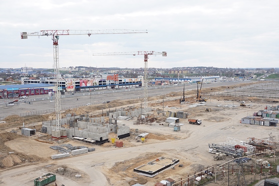 Освоение территории вдоль ул. Тимирязева по другую сторону от рынка в Ждановичах стартовало во втором полугодии 2020-го. К этому времени на объекте завершены комплекс подготовительных работ по организации строительной площадки, идет перекладка инженерных сетей. Также возводятся каркасы двух жилых домов. Застройщик уже анонсировал продажу жилья в них.