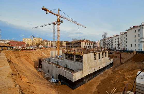 Уже сейчас на фото со строительной площадки можно рассмотреть готовый уровень подземного паркинга под строящимися домами 6.1, 6.2 и 6.3.