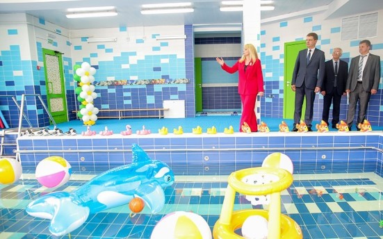 В садике есть бассейн (зал с ванной и местом для разминки), предназначенный для обучения плаванию детей дошкольного возраста, музыкальный, физкультурный, универсальный залы, компьютерная игровая, медицинские помещения, помещения постирочной, пищеблок, административно-хозяйственные и вспомогательные помещения. На территории учреждения размещены игровые площадки для каждой возрастной группы и физкультурные площадки для детей до 3 лет и детей с 3 до 7 лет, оснащенные современным игровым и спортивным надворным оборудованием. Имеется площадка для обучения Правилам дорожного движения.