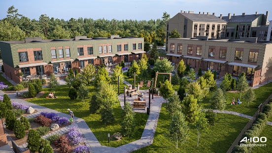 Своим расположением дома нового формата от застройщика образуют букву «П», внутри будет общий закрытый двор с зонами отдыха и барбекю. Внутреннее пространство — строго без автомобилей: парковки организуют за внешним периметром.