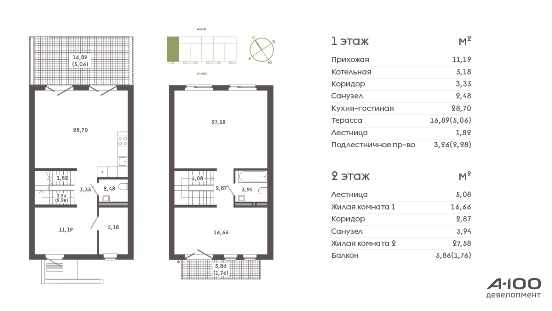 Первый этаж квартиры будет включать объединенную с кухней гостиную, коридор, гостевой санузел и мини-котельную. На втором расположатся две или три спальни, ванна и балкон над входом площадью более 5 кв. метров. Урбанхаусы будут выделять высокие потолки в 2,8 метра и панорамные окна «в пол». Каждая квартира будет отдельно отапливаться газовым котлом с закрытой камерой сгорания.