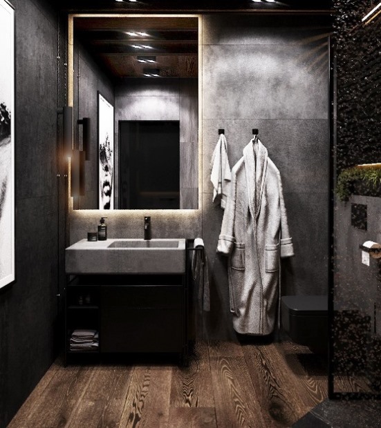 Общая площадь квартиры – 74,24 кв.м. Интерьер спроектирован в стиле современный лофт. Его идеология — простота и эпатаж