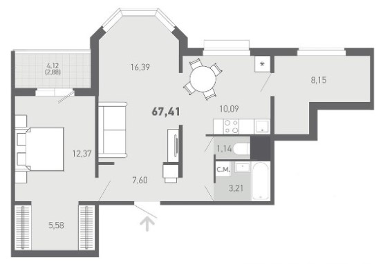 Еще одна особенность дома — в его квартирографии: здесь предусмотрены только «однушки» и «двушки». Но довольно просторные: 1-комнатные квартиры стартуют от 40,55 кв.м, а самая большая двухкомнатная займет 67,41 «квадрата». Кухни будут объединены с гостиными, предусмотрены хобби-комнаты.