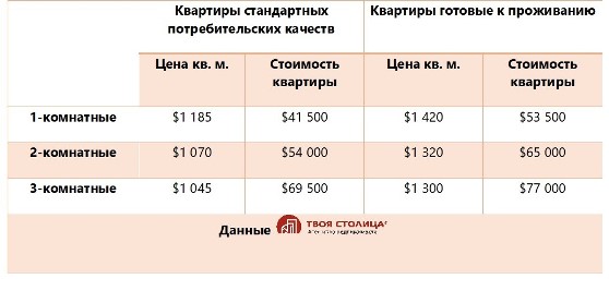 По данным агентства недвижимости «ТВОЯ СТОЛИЦА» средний уровень цен на квартиры стандартных потребительских качеств, то есть требующих хотя бы косметического ремонта, снизился за месяц на 1%. А вот ценовой уровень готовых к проживанию квартир (с ремонтом), в среднем, существенно не изменился. Дело в том, что ремонт в каждой квартире не только имеет ярко выраженные визуальные и строительные характеристики, но и приводит к большому разбросу цен. В результате – квадратный метр в квартире с качественным ремонтом может варьироваться от 1200 до 3000 $/км. м. Как правило по верхней границе ценового диапазона проходят квартиры с качественным дизайнерским ремонтом в очень выгодных локациях или в дорогих новостройках. Таких сделок относительно немного, а срок экспозиции квартиры на рынке достаточно длительный.